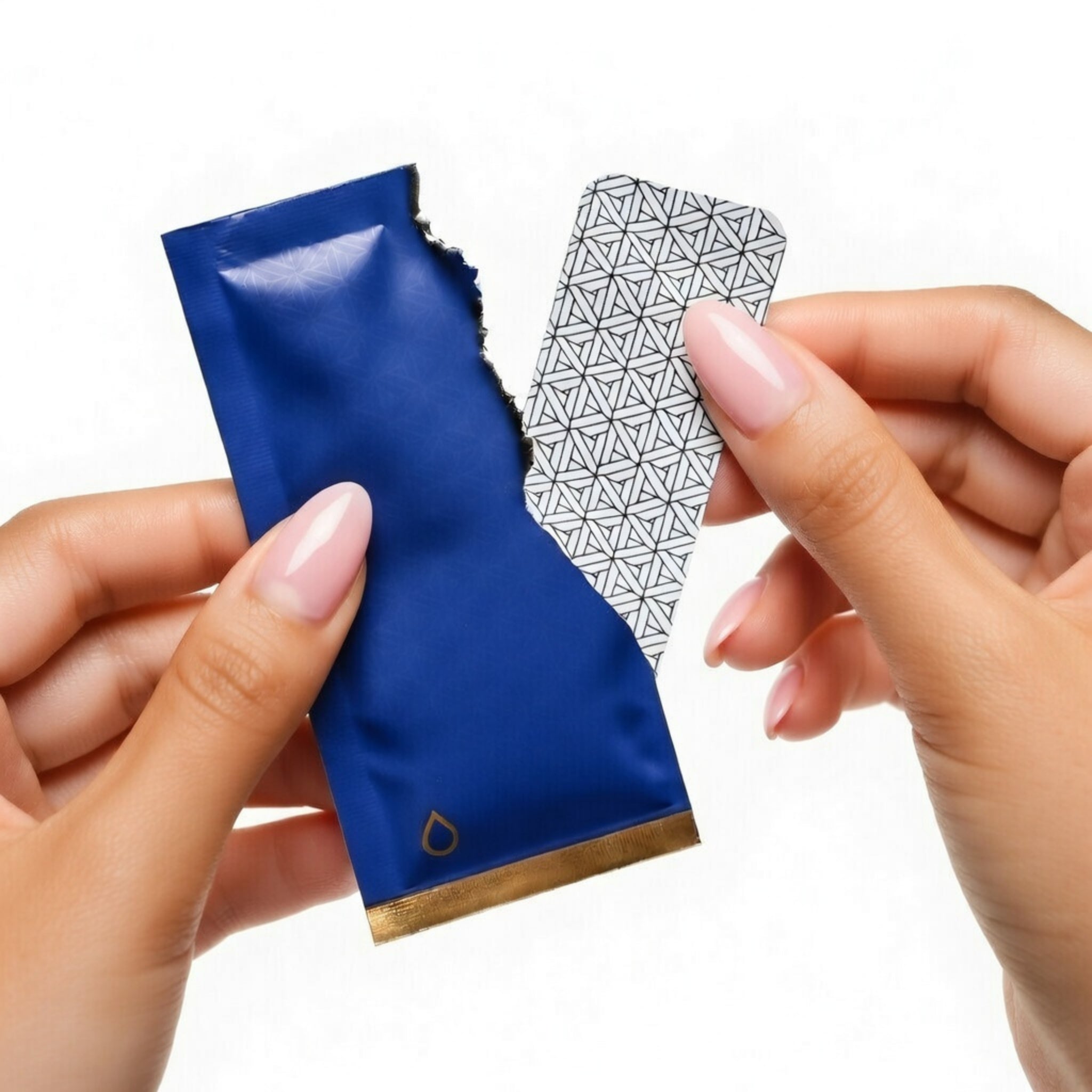 Deschideți cu grijă plicul individual și scoateți banda de albire, evitând să atingeți partea activă.